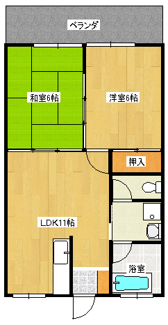 スーパー近く買い物便利。P1台込の2LDK。